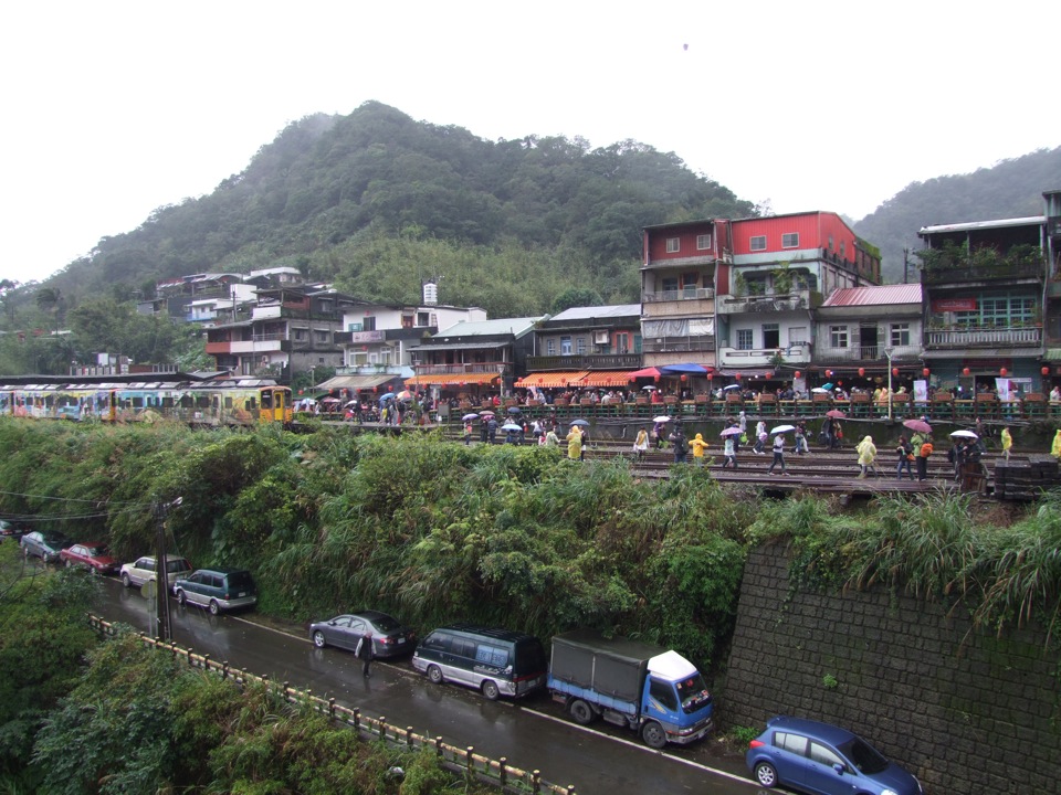 ただ、平渓線の方は、訪れた日がたまたま天灯祭りの日に当たってしまったようで、普段は喉かなローカル線の筈だったのですが、1年で一番盛り上がり、人出も多くなる状況に出くわし、あまりの混雑に列車に乗れない程の事態になってしまい、終点まで行けずに途中で引き返してきてしまいました…。ひとまず左下写真を見て頂ければ分かりますが、普通に線路に人が歩いてしまっている状態でもあります(笑)。
