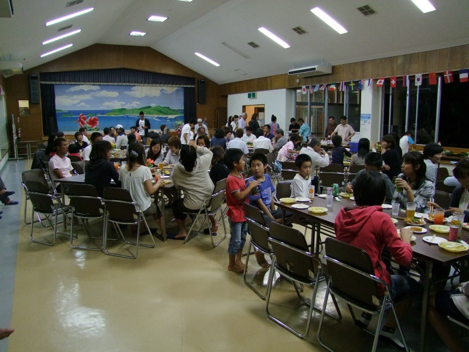 一緒に行ったフルートの西仲さんは勿論、阿嘉島出身のドラマーである和丸君、そして今回は西仲さんの知り合いの方も東京から大勢いらしていて、特別出演として、ステージ内で共演もしたりして、本当にパーティーという名に相応しい、楽しいひと時になったと思います。会場は、村の集会場のような所でしたが、本当に沢山の方に集まって頂いていました。自分達の演奏も、そんなお祝いの席の一環になっていれば幸いです。