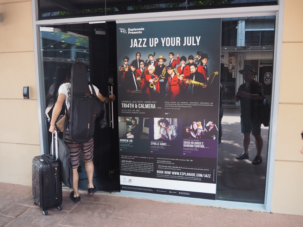 シンガポールは赤道直下の国ではありますが、もはや現在の日本の方が暑いと言っても良いぐらいでしょう。ガーデン・シティとも言われるシンガポールは緑も多く、暑いなりにどこか心地良い空気が流れているように感じました。Esplanade Annexe Studio はベイサイドで、多くの人が集まってくるエリアに位置しており、この周辺を歩いているだけでシンガポール観光が出来てしまいそうな感じでしたが、音楽流行の発信地でもあるのでしょう。色々なイベントが組まれていて、自分達のライブもその一環となっていました。