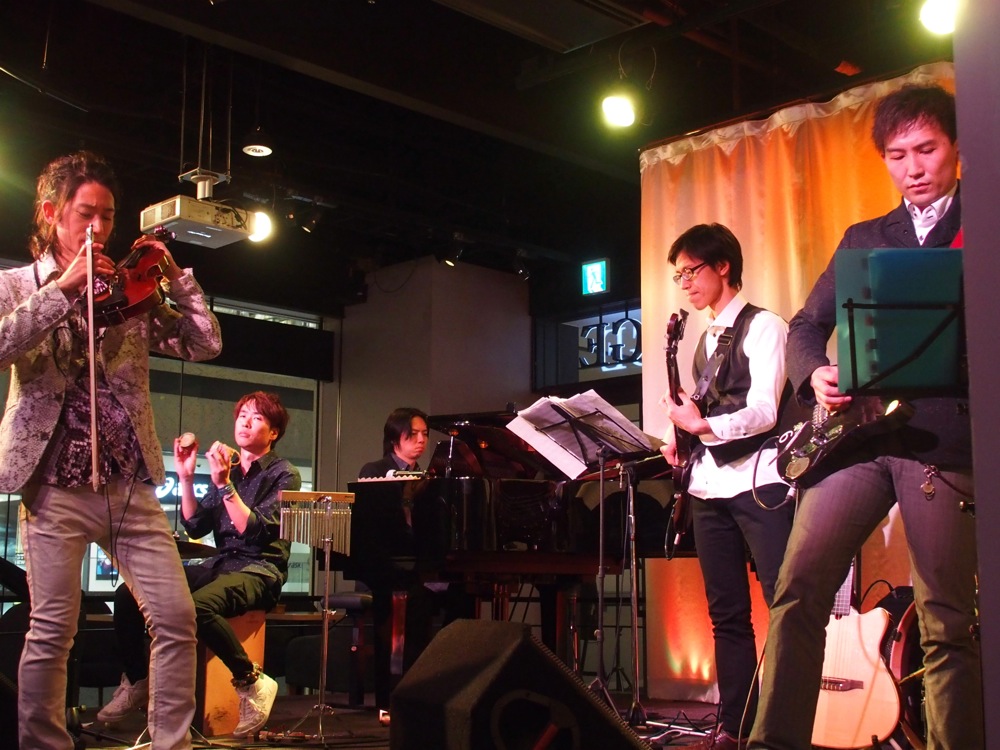 意外にも、ここではライブ自体がそんなに行われていなく、やったとしてもアコースティック編成が多そうな感じではありましたが、そんな中、自分達は6人のバンド編成で挑み、ギターはガットとエレキを使い分け、ドラムとパーカッションの共存もあるという、かなり賑やかな感じではあったので(笑)、結構インパクトはあった事と思います。ここで披露される多くの変拍子のオリジナル・アレンジ曲は、多くのお客さんの耳を印象付けたかもしれません。良い軌跡を残せたと思います。