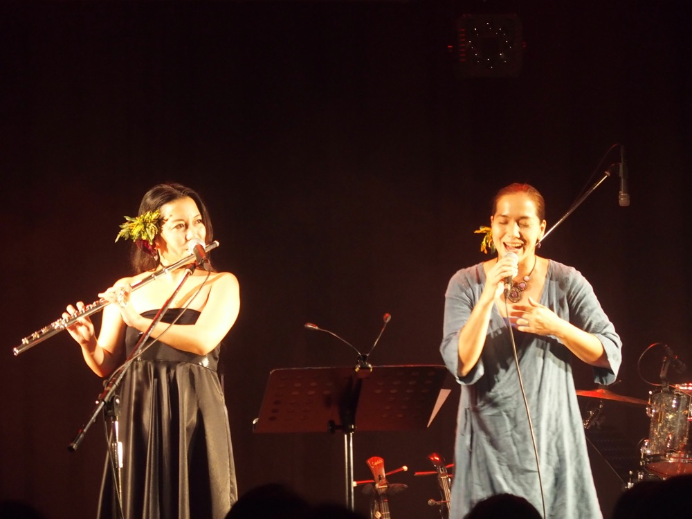 現在は基本的には阿嘉島に住んでいる和丸君なだけに、一緒にライブをやる機会を作るのはなかなか大変なのですが、今回は〔西仲美咲、東京ツアー(2013.9.19〜9.22)〕以来、約3年振りの共演となりました。この時も西仲美咲トリオとしてライブを組ませて貰っていたので、大きく言えば“西仲美咲トリオ、復活!”とも表現出来るのが今回のライブだったとも言えましょう。更に、ゲストミュージシャンも豊富で、初めましての三線歌いの Yoshitoo! さん、そして〔西仲美咲、東京ツアー(2012.9.3〜9.16)〕以来、4年振りの共演となるボーカルの大城蘭さん等、本当に見所が多いライブにもなったのでした。久々に実現した沖縄を舞台としたライブは、豪華で贅沢な1日でした。