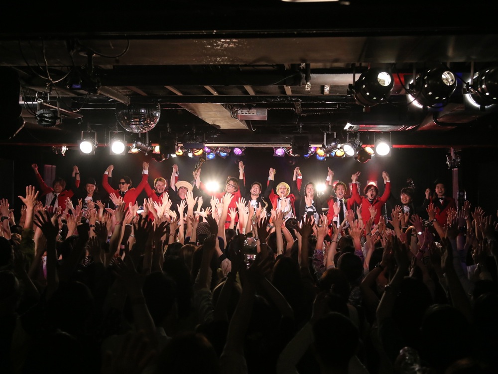 カルメラとのコラボ曲“HORNS RIOT”では、その盛り上がりが爆発的に高まりました。ただでさえ賑やかな楽曲に(笑)、人数的にも倍以上のサウンドになってフロア内を音の暴動で包ませます。高音域から低音域まで、そして疾走するリズミックな打点と共に、皆で一緒になって身体を揺らしてその空間を楽しみました。最高の景色をありがとうございました!