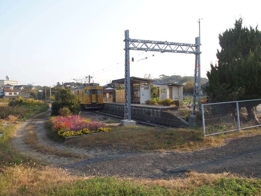 …という事で、今回はツアーの演奏自体は10月22日から始まるところを、前日の21日に現地入りするスケジュールにして、小野田線のエリアである宇部市に宿をとり、ついに次の日の22日の朝にこの路線の乗車を果たす頃が出来たのでした。終点の長門本山駅は非常に簡素な駅で当然無人駅でしたが(右上写真参照)、実は鉄道で訪れるのにはとてもハードルの高い駅なわけで、朝方の雰囲気も手伝って、何だか神々しくも思えた程でした(笑)。