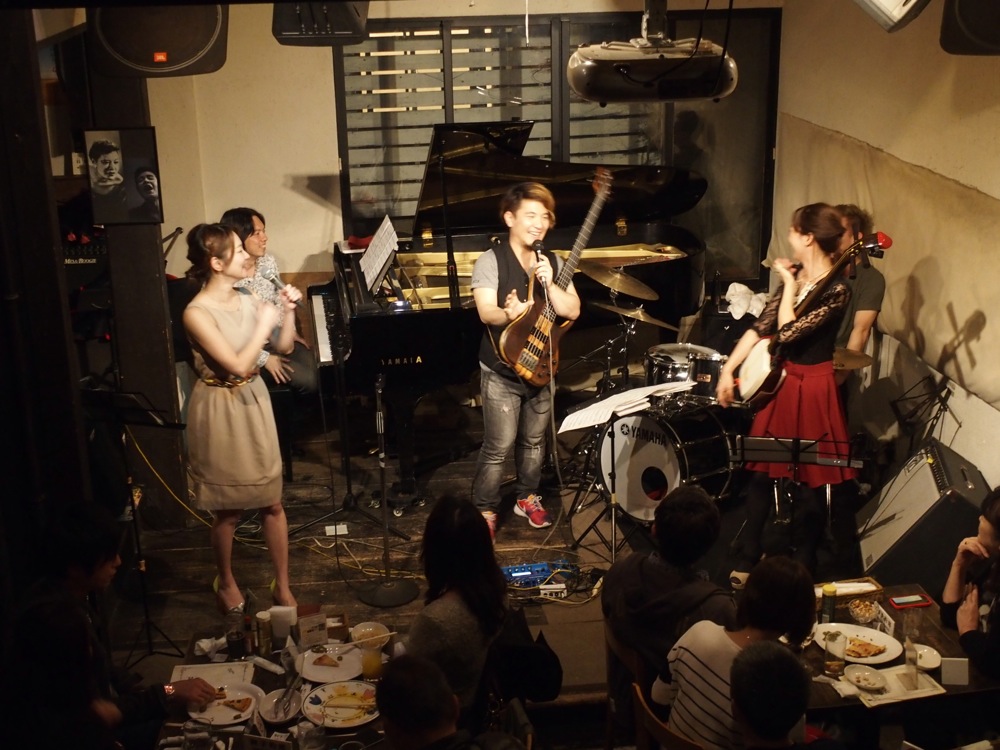 前回以上の大入りを見せた、1日目の天神(福岡) New Combo でのライブ(上写真参照)。写真での笑顔が物語る程、リラックスしてステージに臨めたような気がします。サウンド的にも成長が垣間見えたのか、昨年以上に楽しく、そして聞き応えがあった…というお客さんの声が多かったのは嬉しかったです。ライブ後には、お店からもつ鍋の提供がありまして、楽しく美味しく福岡の夜を過ごす事が出来ました。