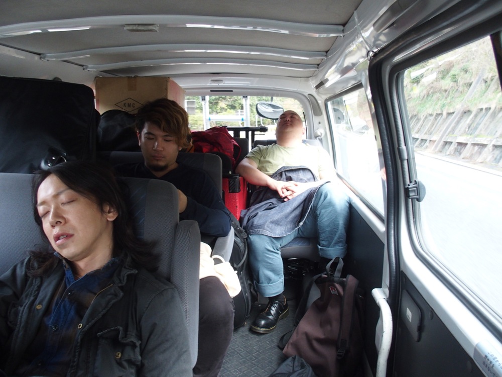 今回は荷物量の関係もあって、ワゴン車1台をレンタルしての行程となりました。…写真では狭そうに見えるかもしれませんが(笑)、今まで一番パーソナルスペースが広く、とても快適に車内に過ごす事が出来たと思います。それは精神的な余裕にも繋がり、各地の美味しい物を吸収しつつ、良いモチベーションでそれぞれのライブと向き合う事が出来たように思いました。