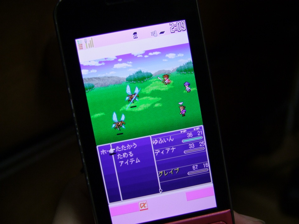 …です。言うまでも無く、名作ファイナルファンタジー・シリーズのゲーム(今のところは、ドコモのiモードのみの配信)でありますが、画面のクオリティと言い、やはり携帯電話はここまで進化したのかと思わずにはいられません。