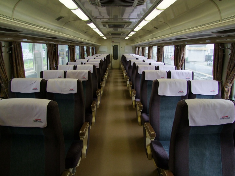 編成こそ、昨日見た時より短い4両編成でしたが、それでも特急列車らしい、威風堂々とした入線は流石でした。最近の車両に見られるような軽快さは無く、正に重鎮という感じです。この車両が生まれたのが1968年の事ですから、それこそ40年以上も走り続けているわけで、今こうして現役として働いている姿が見れる事自体が、凄い事なのかもしれません。車両を改めてじっくり見てみると、先頭車の5分の2ぐらいのスペースは、発電セットや大型放熱器の機器室となっており、その分客室も短くなっています(…つまり、この列車は4両編成ですが、実際は3両編成分くらいの定員しか無いのです)。また、中間車両の屋根上に掲載された、大型の放熱素子を並べた巨大な自然通風式ラジエーターが相当目立っており、これらは現在の車両には踏襲されていない部分でもあるので、やはり時代を感じさせる車両なのだなとも思いました。逆に、良き時代の車両…と言う事も出来るかもしれませんけどね。