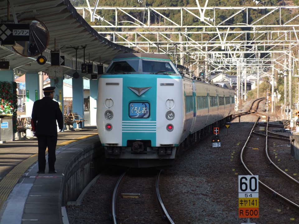 鳥羽からは、近鉄特急、JR東海“南紀”号、JR西日本“くろしお”号で、列車で5時間の移動をして南紀白浜へ…。途中の新宮だけ、やけに暖かった事が印象的です。
