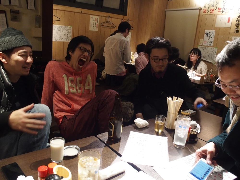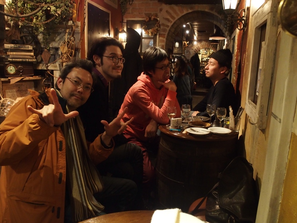 …さて、恒例の?竹内トリオの忘年会です。今年は年末までバタバタしていまして、忘年会らしい忘年会が出来なかったのですが、こちらは無事に開催する事が出来ました。今年は、最後のラーメン屋も数えれば全4軒を梯子し、参加人数も少々ではありましたが増え、例によって自分は途中で爆睡し(笑)、いつものような年末らしい雰囲気を過ごせたと思います。