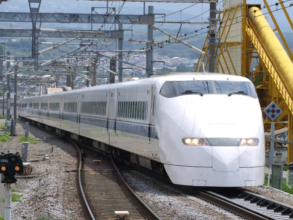 東海道・山陽新幹線に使われている300系です。現在は“こだま”号が主な活躍場所で、最近は“ひかり”号に使われる事さえ少なくなりましたが、初代“のぞみ”号の車両でもあります。この車両で初めて、東海道新幹線区間で270km/時運転が始まり、そのお陰で東京駅~新大阪駅間は2時間半で結ばれました。1992年に営業運転開始なので、もう今から20年近くも前の出来事でもあります。