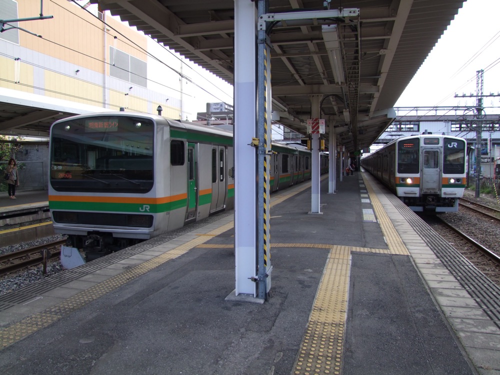 湘南新宿ラインの列車は、ここ高崎駅までやってきていて、中には当駅発小田原駅行き…という列車も存在します。特急以外の列車では、長距離の部類に入る列車と言っても良く、実際に乗り通すと3時間くらい掛かります。それでも、直通という恩恵はやはり大きいですよね。