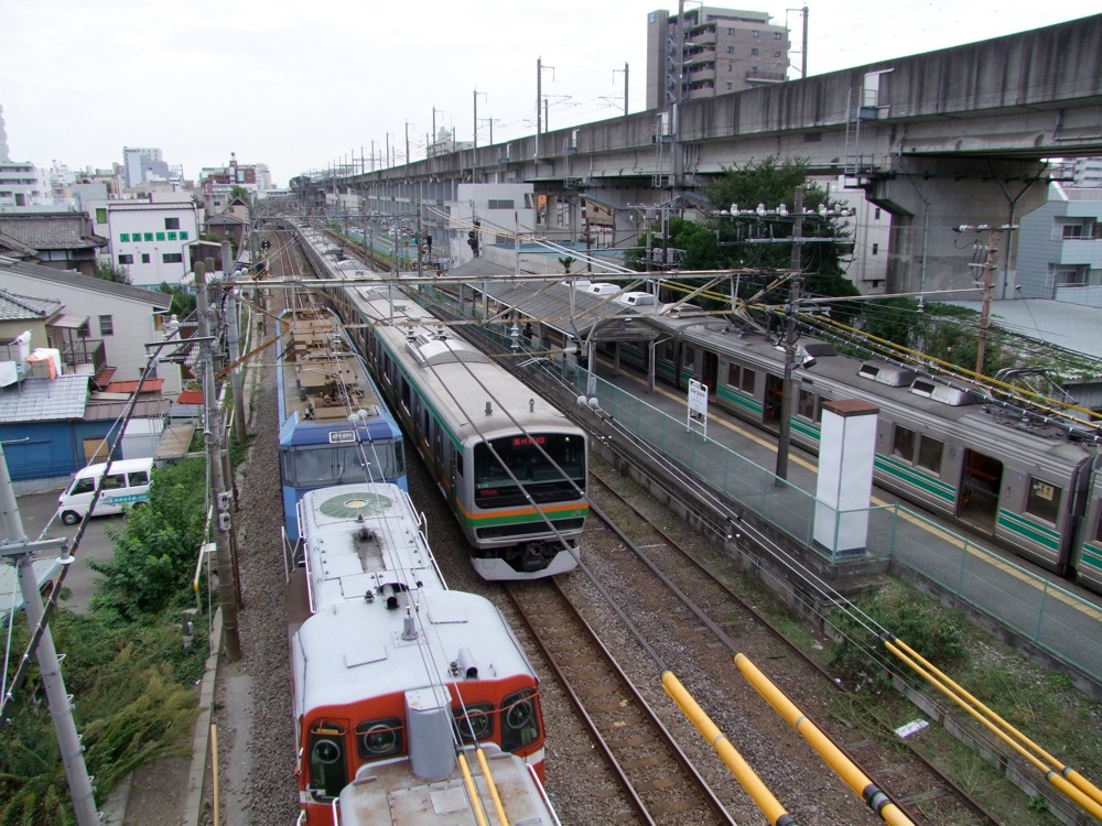 地域的には、やはり国道15号線との立体交差が大きいでしょう。ここでの渋滞は本当に慢性化していましたし、元旦に行われる箱根駅伝の通り道ともなっていた為、ダイヤ的にも制約の大きい状況ではあったのです。写真を見ると、上下2層構造となっているのがよく分かりますが、空港線のこの区間では、どちらが上り線、下り線…という感じではなく、それぞれが共用する単線並列式となっているのは、先程説明した通りです。