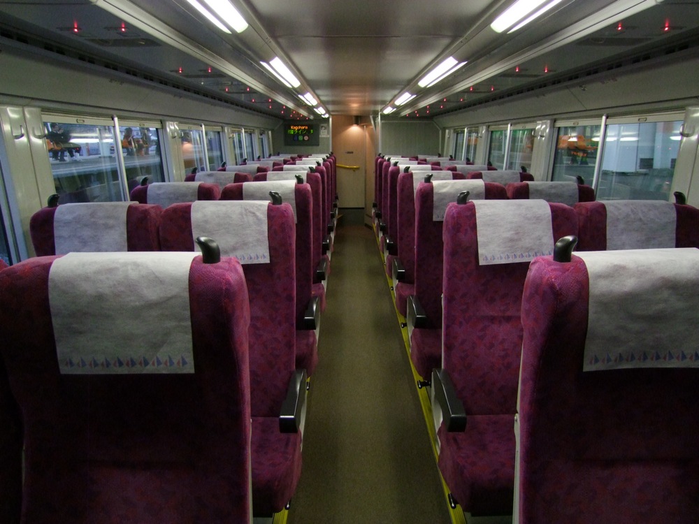 扱い上は“自由席グリーン車”となっており、着席の保障はありません。この場合、例えデッキで立っていてもグリーン券が必要となるので注意が必要です(これはJR全線列車に言える事ですが…)。平日や土休日、そして事前購入か車内購入で値段が異なり、これは不正防止の意味もありますが、明らかにグレードが高いこの車両は、高い値段を払ってでも乗りたいと思わせる価値は十分にあるでしょう。