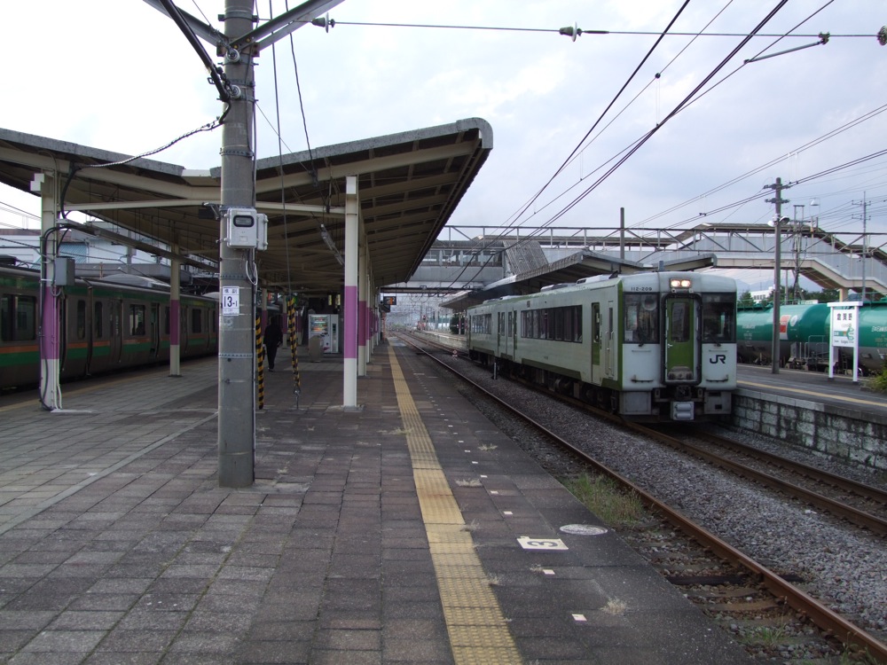 この駅は、今までは階段で駅舎の2階に上がった筈でしたが、その跨線橋は最近になって廃止され、地平のまま(その代わり1番線は行き止まり式になり、下り線に合流出来ない構造になりました)、この駅の先にあるバス・ターミナルまで行く感じになります。電車に合わせてバスは設定されており、有名な草津温泉までは、ここから25分くらいです。