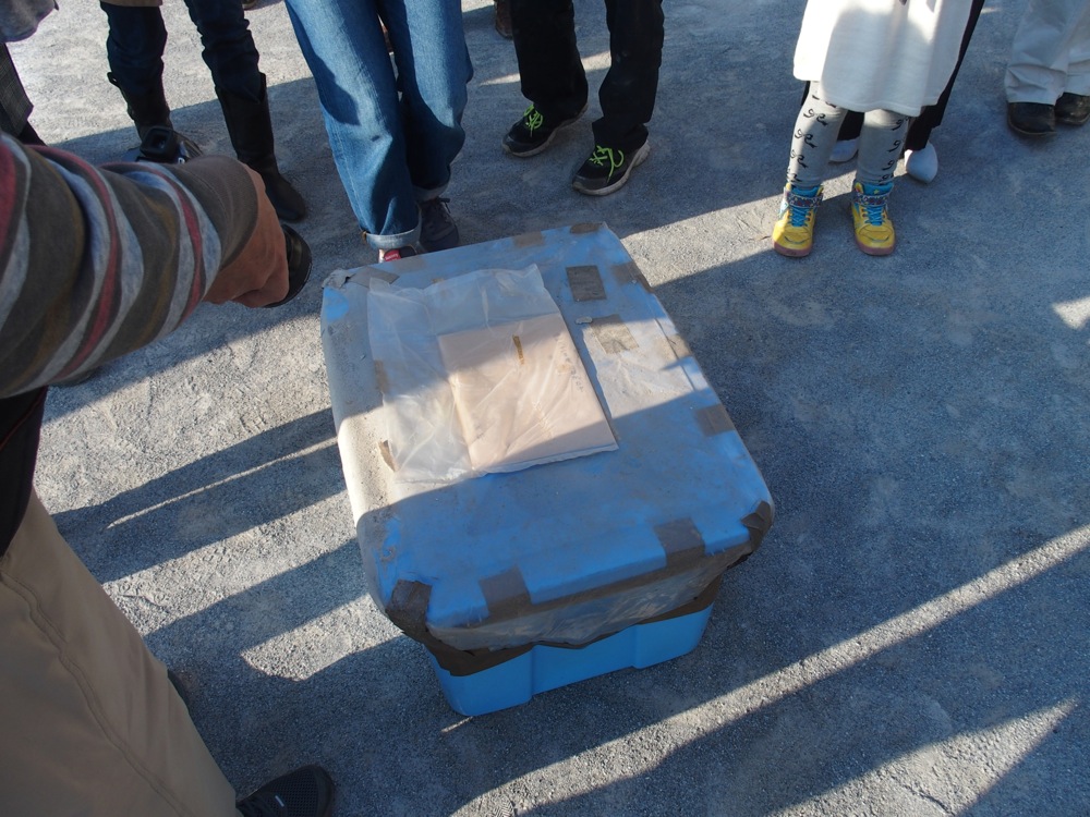 …クーラーボックスのような収納ボックス1つのみ。それこそガムテープで蓋は強く閉じられていましたが、いささか厳重さに欠けるような雰囲気が(笑)。…とは言え、中身が気になりますが、ボックスの蓋の部分にメッセージが書かれた封書が収められており、まずはその文章を読み上げるところから始まりました。
