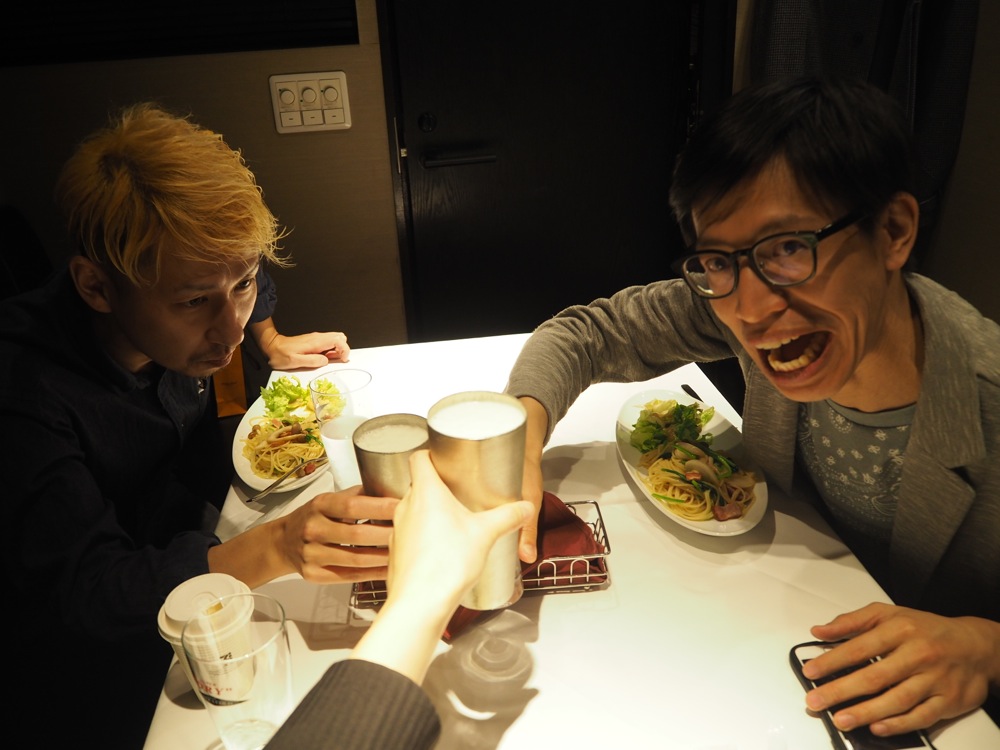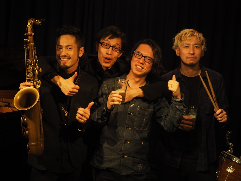 この4人での公でのライブは初めてとは言え、お互いに顔を知り尽くしたメンバーです。本番前の乾杯は欠かせません(笑)。リラックスした表情でお店に入り、サウンドも素晴らしいものになると確信したものでした。