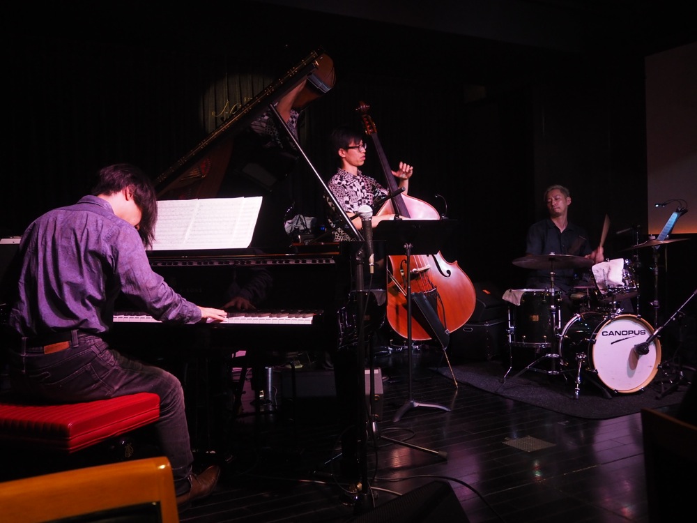 銀座 No Bird でのライブは、2ステージたっぷりと時間を取らせて貰って、しかもピアノは大好きなスタインウェイのものを使わせて貰っています。この日はお客さんも沢山お越し頂いて、素晴らしい状況でトリオライブを迎える事が出来ました。3人のみでの演奏というのは、言い換えれば、いくら攻めのフレーズを弾いても、メンバーから必ず反応が返ってくるという安心感、信頼感があります。この為、この日はいつもよりアグレッシブな演奏になりそうだなという予感はしていたのですが、それはその通りの仕上がりとなりました。