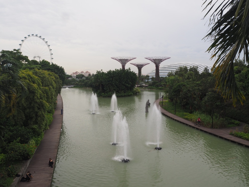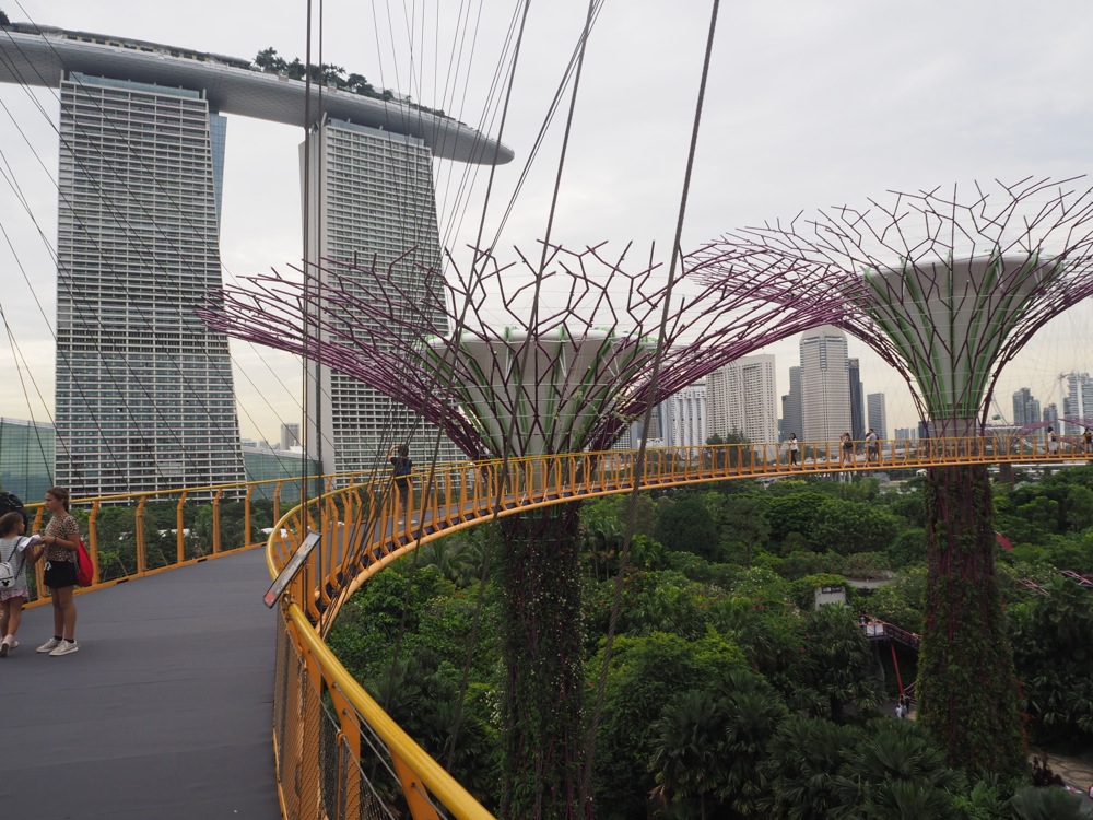 あの有名なマリーナ・ベイ・サンズの麓に位置するこの場所は、まるで SF の世界のような高度技術が導入されていて、巨大ガラスドームの中には常春の花園が再現されているかと思えば、高度2000mの寒冷な高山も再現されており、その他にもバオバブ等の、一部地域にしか存在しない植物がここには展示されていたりと、地球上の様々な環境をここでは再現させているのです。また、上写真のように高さ50mの人工の木、スーパーツリーからはマリーナ・ベイ・サンズをはじめ、観光名所がずらりと見渡させ、これぞ自然と人工的なものを上手く調和させた、全く新しいコンセプトの植物園だと思ったのです。
