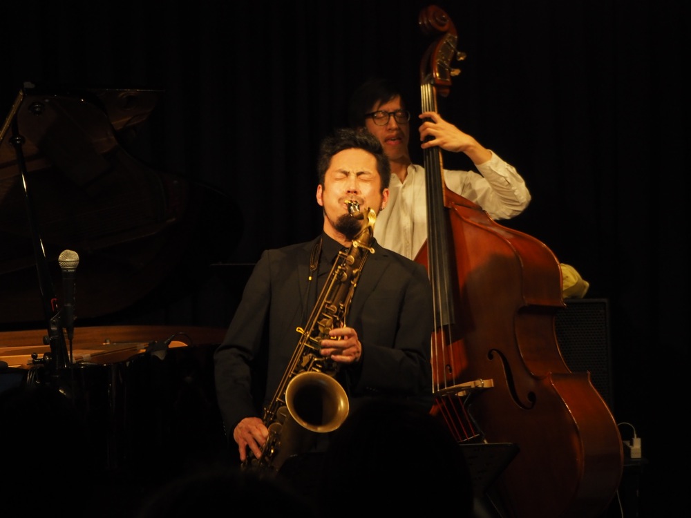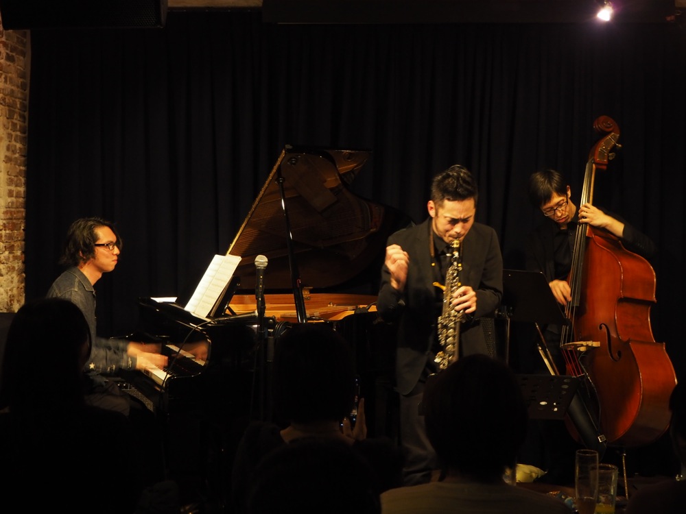 今回、曲を選ぶにあたって、何をやろうかは非常に悩みました。早い話し、やりたい曲が沢山あったからです(笑)。このトリオでの曲は、基本的にピアノがメロディをとる曲が殆どなので、それをサックスに置き換えるというのは簡単な話しではないのですが、事前リハーサルを行っていた時に、テナーサックス、ソプラノサックスでも違和感は無い事が証明されており、それがより選曲に幅を持たせる事にもなりました(笑)。今回、初のライブという事もあり、そこは厳選させて頂きまして、2ステージたっぷりに振り分けてお届けしたのでした。