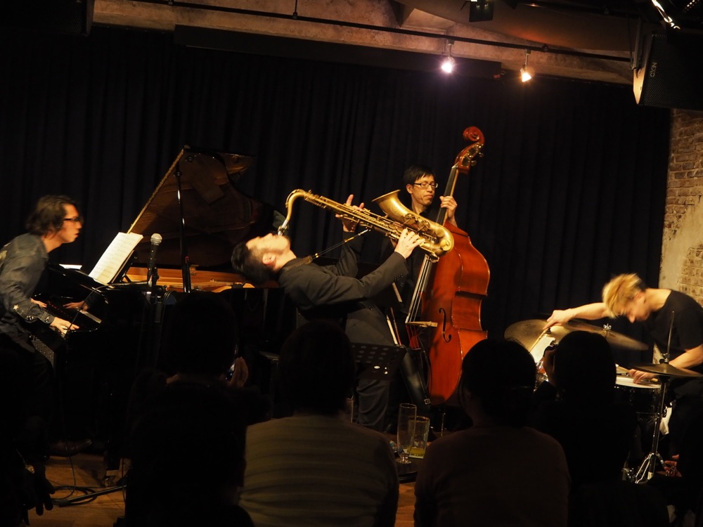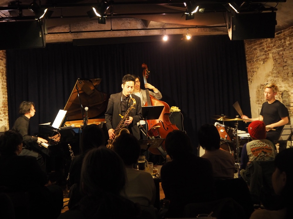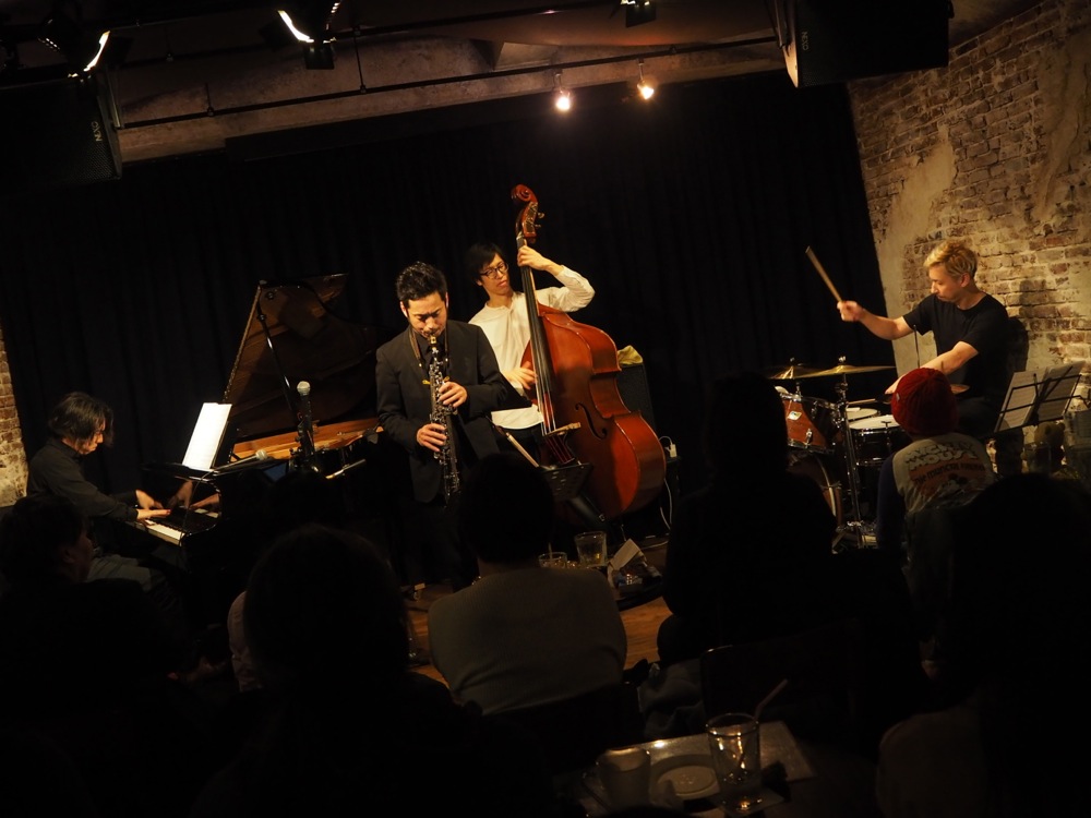 そして、藤田君オリジナル曲“Circle”も、この4人では初めての演奏となりました。このようなオリジナル曲が続く中、途中にはサックス奏者のソニー・ロリンズの“Penny Saved”もカバーさせて頂きまして、こちらは即興メインで、ジャズらしい自由な時間がお届け出来たのではないかと思います(いま振り返ったら、この1曲で18分も演奏していて驚きました…笑)。