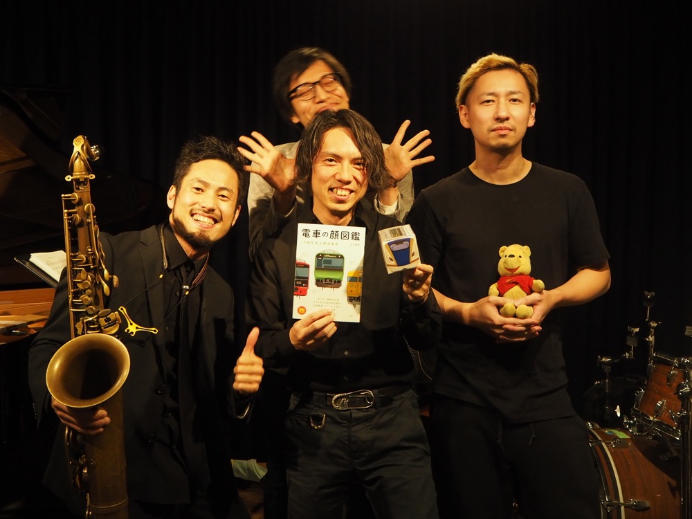 アンコールには、こちらもお馴染み“Gare de Chasse-sur-Rhône”を演奏させて頂きました。前回も演奏したので、慣れも生じていたと思います。より曲の深い部分を探れた時間にもなっていたのか、演奏していてとても楽しかったです。藤田君も、淳之介カーブは出るわ、客席練り歩きも出るわ(笑)、絶好調でした。この4人ならではの演奏形態が見えてきた感じもあり、それを見出だせた幸せを感じました。