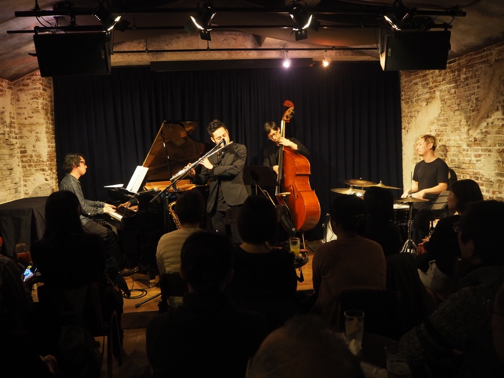 2nd ステージでは、新しい試みを存分に盛り込みました。正に、今回4人で新たに取り上げる曲の応酬で、トリオ曲でお馴染みの“Casa Familia”、“From East”は勿論、この日の為に新曲も書き上げました。タイトルは“Little Quartet”。まだ4人としての活動は少ないですが、今後への展望も込めて、4人という編成で演奏する事を前提に作った曲でもあります。こちらの曲の成長も楽しみです。