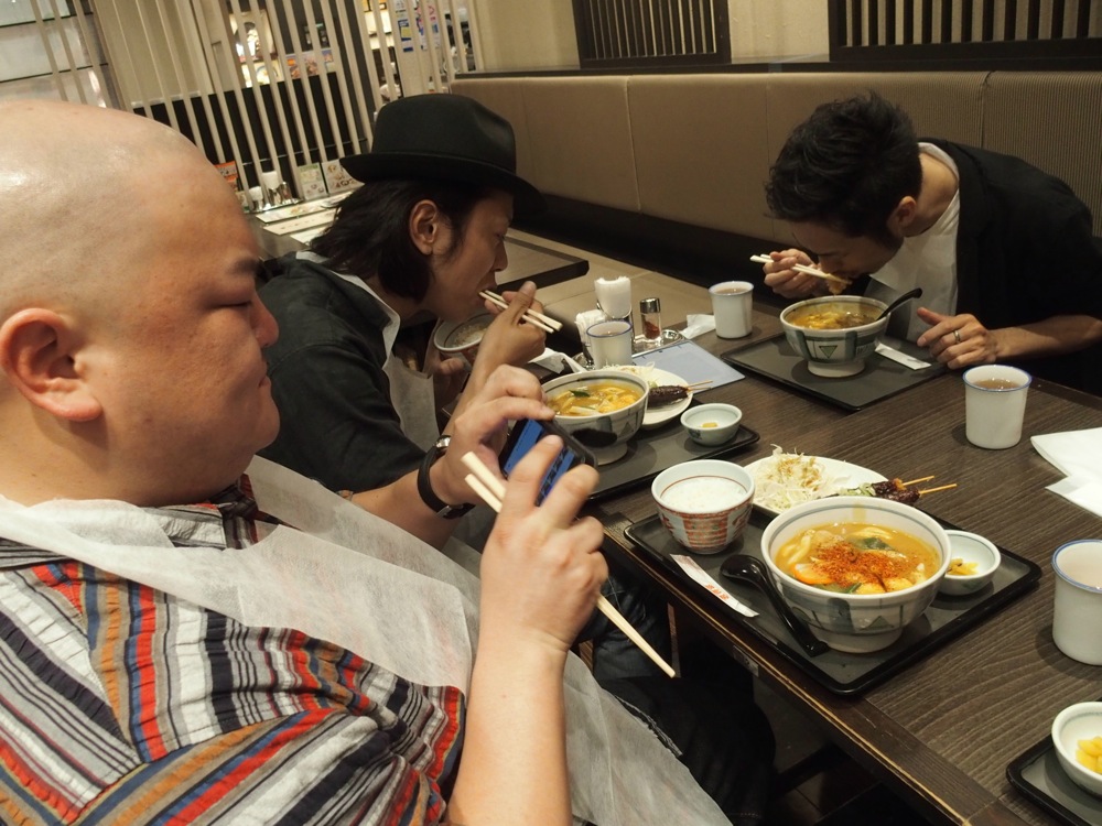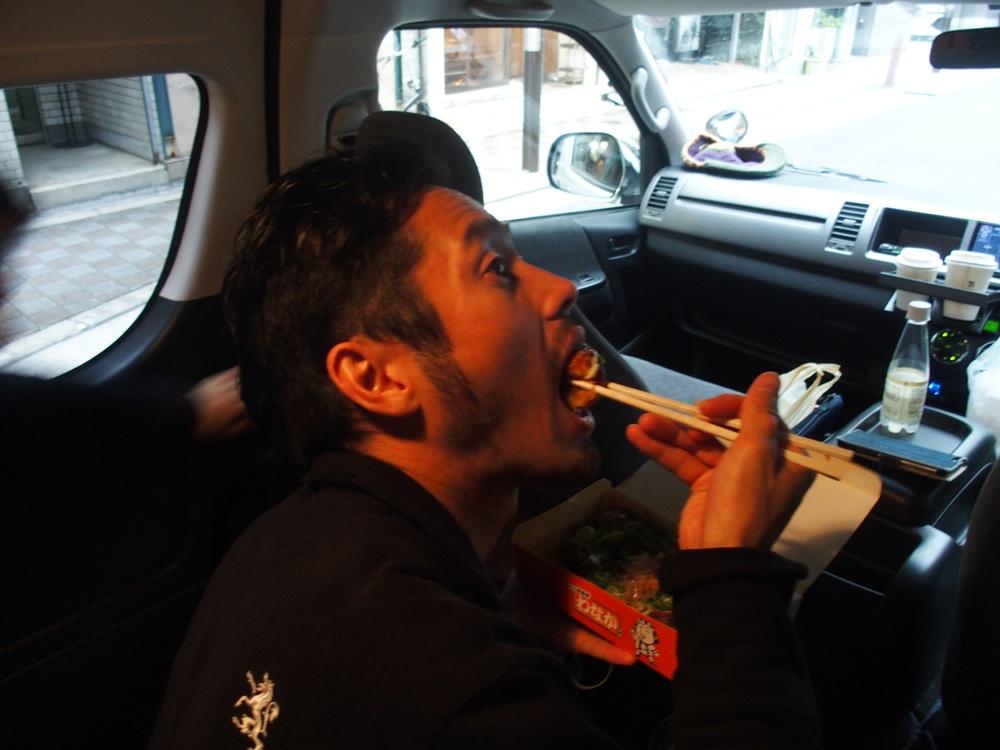 先日の東京〜高松の移動から考えれば、東京〜大阪はまだ近い方だと言えるでしょう。そして前日のように、この日は大阪でのラジオ収録を目的としていたので、ライブがある時よりも集合時刻は遅く、その意味でも余裕のある移動と言えました。当然ですが、そもそもが時間に余裕があるスケジューリングをしているので、目的地にもだいぶ早く着く事が出来ました。…そしたらやはり、大阪の食を楽しみたいもので、早速たこ焼きの「わなか」に行ったものです。サックスの藤田君は大の粉もの好き。今回も満足のいくツアー初日を過ごせたのではないでしょうか。