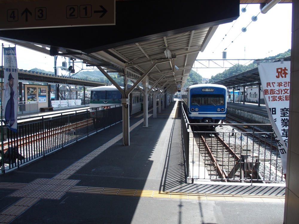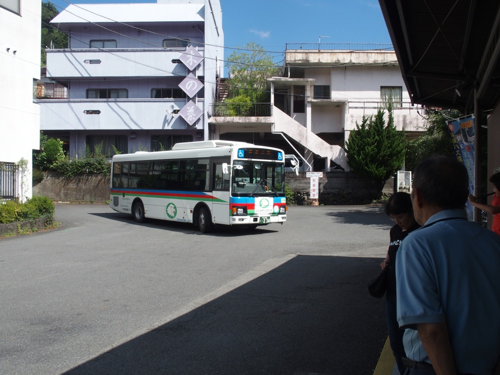 バス停まで徒歩で10分程。この近辺が修善寺温泉の中心街となるようで、バス停も、小さいながらもターミナル風になっていました。どうやら、ここを始終点としているバスが結構多く、よく見ると東京方面へ直通しているバスの設定もあるようでした。…とは言え、自分が乗るのは普通の路線バスで、伊豆箱根鉄道の修善寺駅へ向かいます。ここまでバスで約10分。そして電車でのんびりと帰ります。
