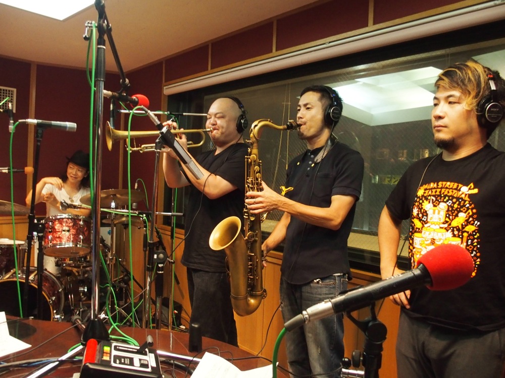収録も、正に通常のライブをやっているように…との事でしたので、本当にここで今ライブを行っているような、そんなテンションでやらせて頂きました。演奏自体は短い時間ではありましたが、TRI4TH らしい熱量のある音の渦を凝縮してお届け出来たのではないかと思います。演奏後には今録音した音を早速チェック。特に問題も無く、オッケーも出て終了となりました。今回のような経験は今まで無かったので、始めから終わりに至るまで、新鮮且つ、楽しい時間を送る事が出来たと思います。最後にはポスターにサインも書かせて頂きました。多くの方に聴いて貰えるようにと願いつつ、FM802 を後にしました。