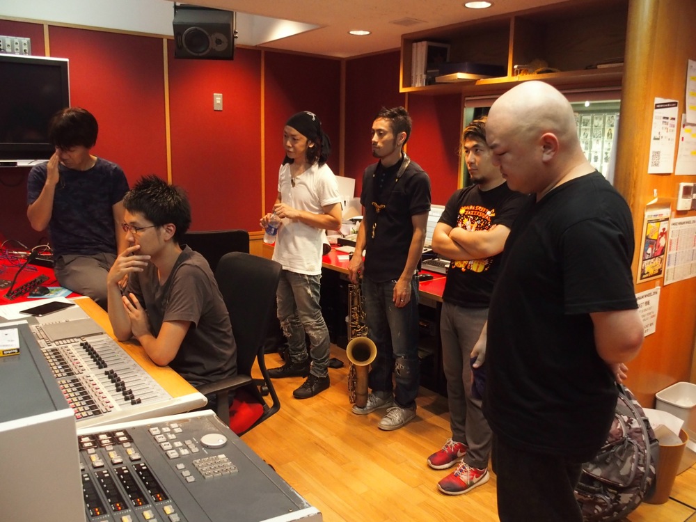 …とは言え、演奏場所は普通の収録スタジオで行われたので、ドラム等の楽器を持ち込んでの演奏はなかなかスペース的に大変ではあったのですが(笑)、限りある場所を有効活用して何とかセッティング。サウンドチェック等をして、いよいよ演奏収録を行いました。