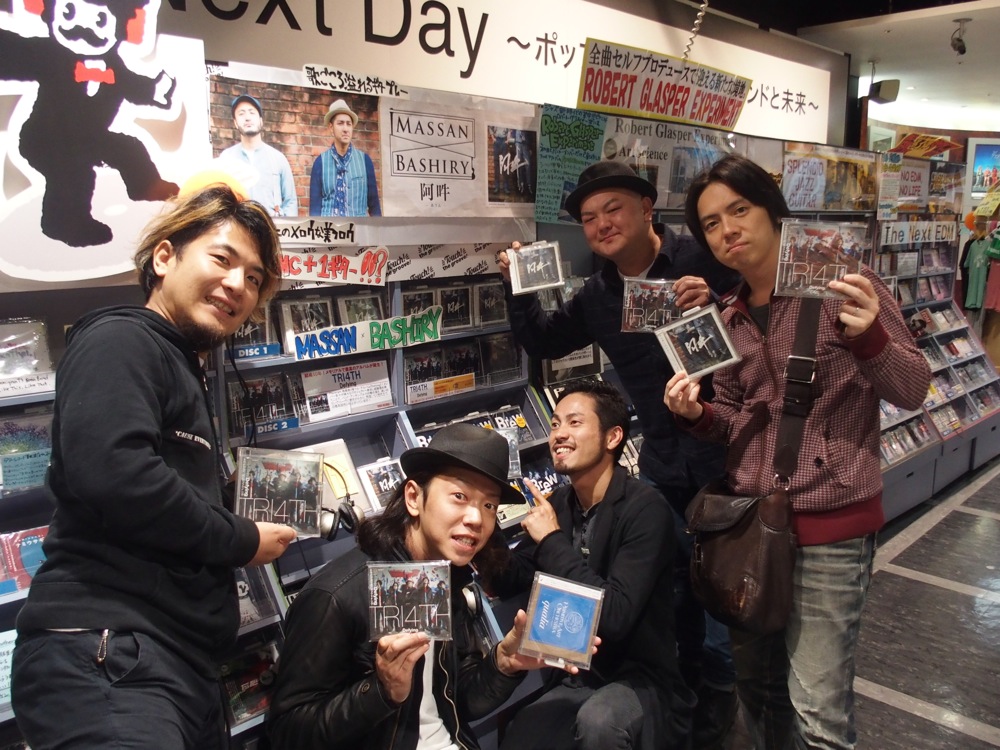そして再度お店に戻る前に、タワーレコード梅田丸ビル店に御挨拶にも伺ってきました。先日発売になった TRI4TH『Defying』の展開情報を聞き付け、今回どうしても寄っておきたかったのです。顔が若干赤いですが(笑)、コメント、サインを書かせて頂きました。改めて、大きな展開に有り難さを感じつつ、すぐに URGE へと戻ります。お店の入口には今回のフライヤーも掲げられ、リリース・ライブらしい雰囲気も徐々に感じてきたものでした。