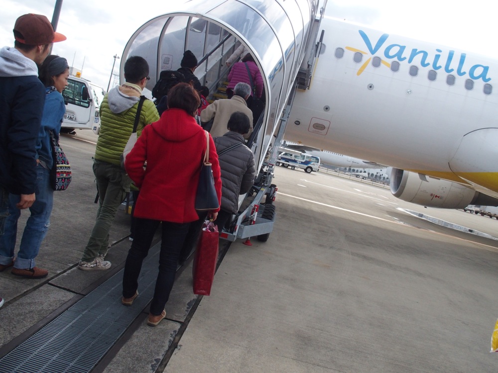 確かに、Peach のような航空会社がもっと増えれば、自分達で企画するようなツアーの助けになる事は確実であり、それがもっと浸透していけば、より各地で気軽にライブが出来るようにもなると思います。そんな期待感もありつつ、成田行きの便に乗ったのでした。勿論、ターミナルを出てからのタラップでの搭乗で、改めて間近で見る飛行機に、ひと際格好良く見える瞬間を感じたりしたものでした。