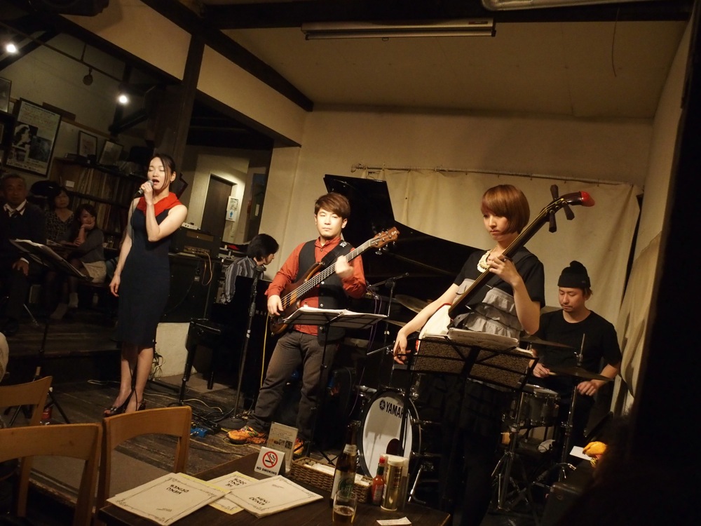 前回の大阪でのライブを思い出すに、関谷君のMCが空回りしていたような印象が残っていたのですが(笑)、この日はやはりバッチリでした。前回ら今に掛けての黒船の事、そして初めてリリース出来たCDの事等、話題は豊富です。更に、このツアーはまだ続いており、念願の奄美にまで行く予定があるとならば、お客さんの興味も自然と上がってくるものです。そうして奄美民謡の曲もお送りするのですが、関谷君の大胆アレンジがまた光り、お客さん達もノックアウト(いい意味で)。だいぶインパクトのある時間になったのではないかと思いました。