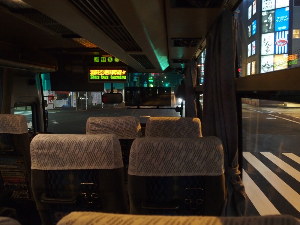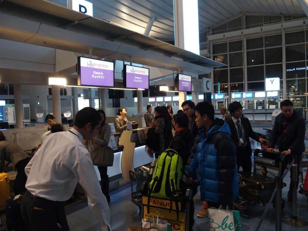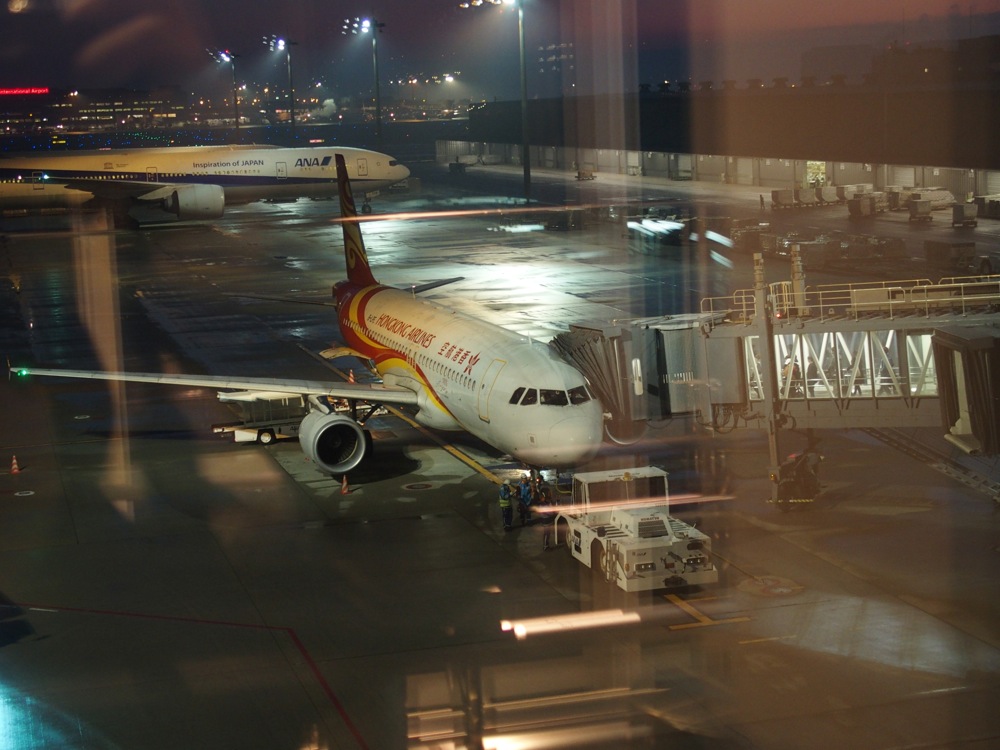 そこで使えたのが、早朝リムジンバスでした。なんと、自分の地元である池袋駅を4:25に出発をし、なんとか羽田空港国際線ターミナルには5:15に到着してくれるのです。これでもギリギリなのは承知ですが、羽田空港国際線ターミナルはそんなに大きくないので大丈夫!…と、勝手に自分を勇気付け、それで向かったものでした。実はこの日は、前日の夜に青森から帰ってくるという事情がありまして(笑)〔鉄道さんぽ 31.(津軽鉄道、津軽鉄道線編)参照〕、なかなか強行軍の中ではあったのですが、無事に起床…、そして羽田空港へ…。眠い目を擦りながらも、香港エクスプレス自体が初めてだったので、チェックインが終了するまではドキドキしたものでした。そんな中、無事に手続きが終了して、一気にホッとした事を覚えています。それでも尚、自分より後に丹精君が空港に到着して、悠々とチェックインを行っていた事に感心をしたものでした(笑)。…ちなみに慎さんは、成田空港から別便で向かう事になっていました。