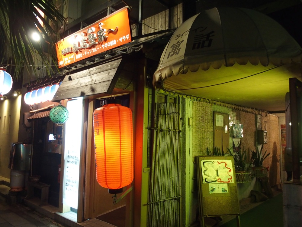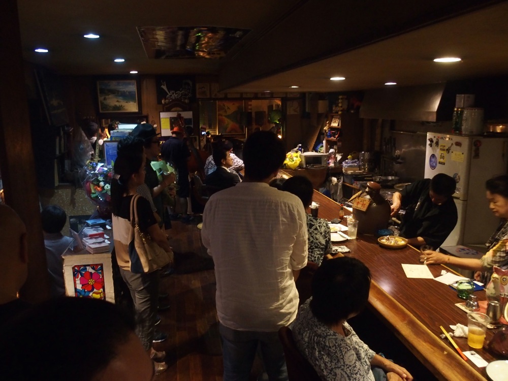 そして、明日演奏する ASIVI を少し見学させて貰い、この日の全予定は終了。近くの居酒屋で打ち上げを行い、明日に備える事にしました。勿論、奄美料理が堪能出来るお店をセレクトし、更なるモチベーションを上げていきます。ここでも勿論ポスターは貼ってありましたが、ここで自分達のボーカルが里アンナさんである事を告げると、お店の人もやはりよく御存知だったみたいで、「これは明日、お店を畳んででも見に行かなくちゃね〜」と、嬉しい事も言って下さいました(笑)。皆、お喋り過ぎで、そして皆、優しく、温かいです。