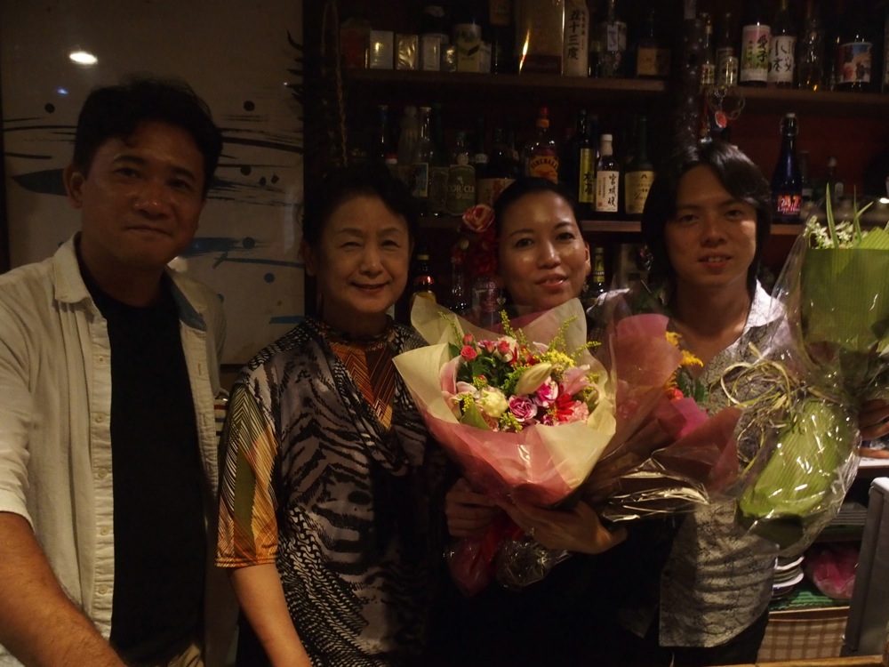 今回、1日目となる大阪でのライブは、この2ヶ月前に TRI4TH で大阪に来た時にライブをやらせて頂いた〔TRI4TH、関西ツアー(2015.5.18〜5.22)参照〕、梅田 Always にてでした。既にお馴染み感があって嬉しいですが(笑)、お店に入ると、既に太田君が祝杯をあげていたようで、こちらの方が昔から馴染みがある感じになっていたのは流石でした(笑)。早速自分も頂いて、乾杯します。