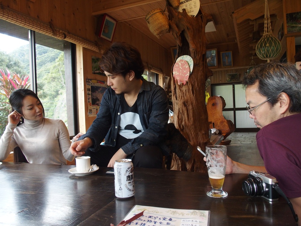 女性陣の休憩に合流して、ホッと一息…。ビールを飲む者はこの時点でビールを飲み(笑)、そろそろライブハウスに向かう時間です。奄美の色々な景色に出会い、色々なものを吸収しながらのこの日のライブは、きっと良い感性を導き出せてくれるでしょう!
