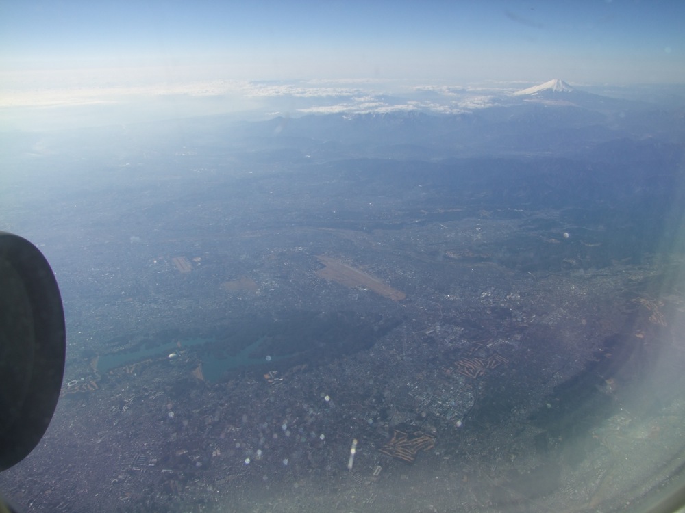 羽田〜小松線は本州を横断するような路線なので、その景色はなかなか見所が多いものでもあります。天気は概ね良く、自分も富士山を望める左側の窓側席をゲット出来ていたので、飛行機からの景色には期待大という心境でもありました。そして時間通りに飛行機は羽田空港を出発。短距離路線なので、離陸の助走距離も短く、あっという間にエアボーンした感じでした。
