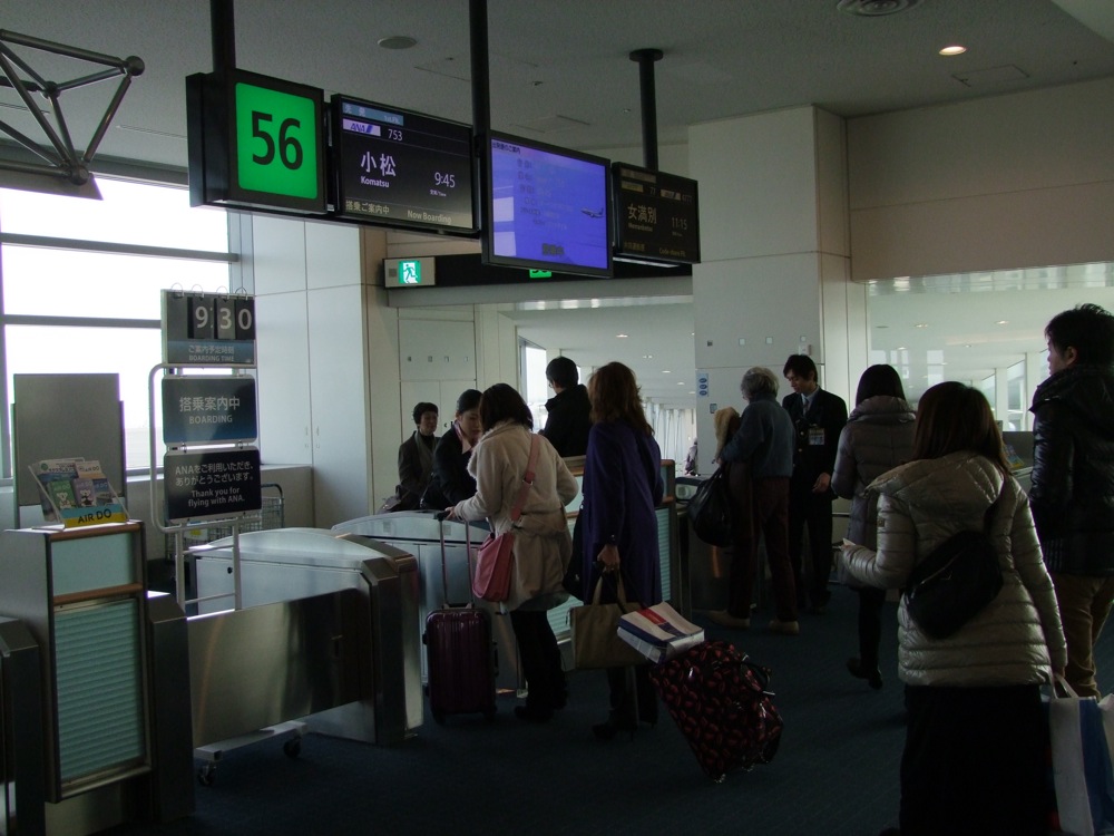 山代温泉に行くには、石川県にある小松空港行きの飛行機を使うと便利で、今回は羽田空港を9:45に出発する便で向かいました。石川県は首都圏からすると遠いイメージですが、飛行機は途中の山々を一気に飛び越えて直線で向かうので、所要時間は約1時間強という、とても短距離区間の設定地域でもあります。いつもツアーとなると、わりと朝早い便で向かう事が多い中、今回のような時間設定は有り難いものでもありました。特に藤田君と自分は、前日の朝早くから別のレコーディングに参加しており、ハードスケジュールの中での今回だったので、少しは救われた時間でもありました。