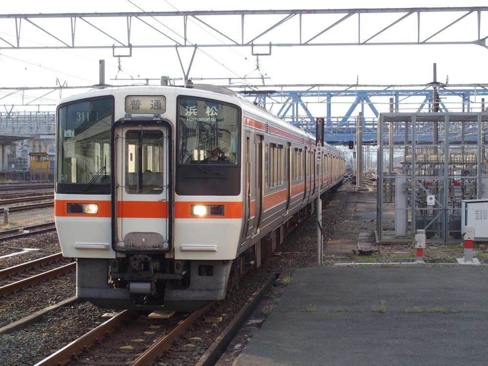 名古屋駅で降りて、きしめんを搔き込み(笑)、在来線に乗り継ぎます。東海道新幹線利用ですと、ここから東京までは1時間40分程ですが、在来線を乗り継いだ時の所要時間は約7時間であり、この時点で16:30ぐらいだった事を考えると、名古屋駅発はもう最終電車に近い状況である事は言うまでもありません(笑)。ここからは東海道本線の東京方面への、最終電車の乗り継ぎのイメージで進んでいきました。