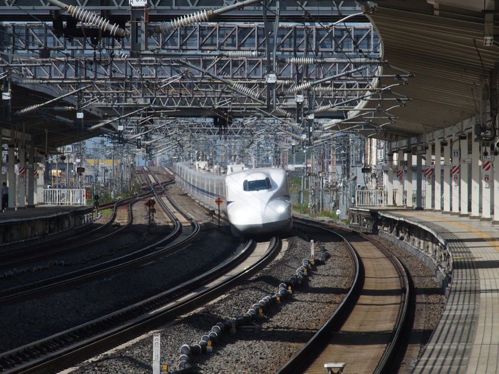 米原駅は滋賀県唯一の東海道新幹線の駅でもあり、『のぞみ』号は全列車が通過するものの、毎時1本の『ひかり』号は停車するので、このままダイレクトに東京に帰る事は可能でした。しかし、これだとまだ時間的に早いのと(笑)、この時はゴールデンウイーク真っ只中で、指定席はどの列車も満席状態。…とは言え、全て在来線で帰るというのも時間的に厳しいという事情もあったので、新幹線でひとまず名古屋駅まで移動し、そこから在来線で東京に向かうという行程をとりました。新幹線の待ち時間を利用して、高速で通過していく撮影に挑む時間もまた楽しいもので、こちらもあっという間に時間は過ぎてしまいました。