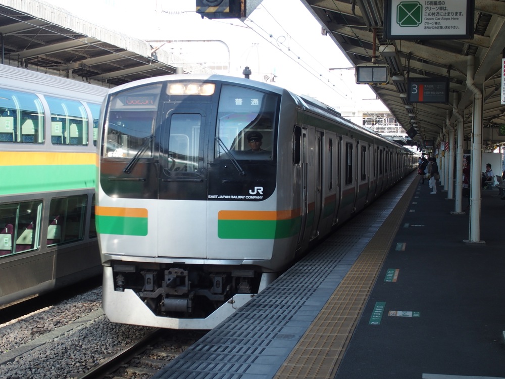 いつものように、自分は東京の自宅から在来線で静岡方面へと向かっていました。今回の目的地は富士市。弾楽としてライブをやる場所としては、熱海や三島、沼津に比べて遠い部類に入る場所です。弾楽のお陰で、静岡県内でライブをやる機会が本当に増えましたが、多くのお客さんと触れ合えるようになったのも嬉しく、これはやはりバンド活動様様でしょう。在来線で行くと約3時間の行程ではありますが、途中には海も垣間見え、ゆっくりと東海道を下っていくのは未だに飽きがきておりません。折しも、今回利用したJR東海道本線の車両は、この路線では貴重なE217系(左下写真参照)…。東海道本線では2015年3月までの運用なので、しっかりと記録に収めておきます(笑)。