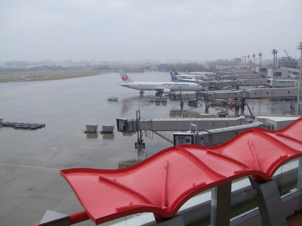 今回の飛行機は、羽田空港をお昼少し前の便と、少しゆったりとした時間の出発となっていました。沖縄への便としては珍しく日本航空を使い、いつもとは異なる雰囲気を楽しみます。天気も概ね晴れていて、なかなかのフライトが期待出来そうでした。…というのは、西仲さんとの沖縄ツアーの思い出は台風無しには語れず(前述の沖縄滞在時間が18時間というのも、台風の影響によるものでした…笑)、天気が晴れているだけで有り難かったりするからです。今回は流石に影響は受けないでしょう。予定通りに移動、そしてライブが開催出来る事には、改めて感謝しなくてはなりません。