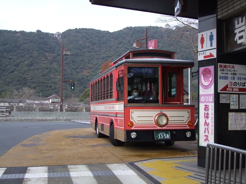 …さて、時期が時期だけに、ターミナルビル内には大きなクリスマスツリーも飾ってありましたが、そんなにゆっくりはしていられず、バスで岩国駅へと向かいました。飛行機の発着に合わせて運行されているので、これを逃すとなかなか大変なのです。
