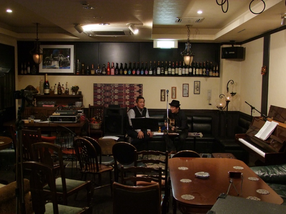 …ただ、やはりこのお店はお客さんとの会話が楽しく、気合いとはまた異なった方向への楽しさへと移っていってしまいます(笑)。それもまたこのお店の魅力なのですが、ここでの演奏はジャズ・スタンダード曲を多めに、ジャズらしい即興的な部分を全面に押し出して進めていきました。反応もストレートに返ってくるので、更なる会話も楽しくなってきてしまいます。