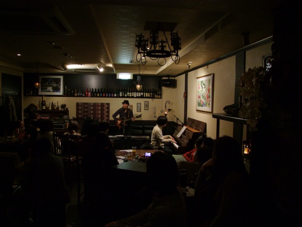 Janosz に着いたのは17:00頃で、リハーサルを終えると、そろそろ辺りも日が暮れてきたという感じで、その中に佇む AKARA もまた、神秘的な雰囲気を醸し出しています…。この近くには何度も来ており、お店の存在も知っていましたが、改めて、この場所でライブが出来るというのは新鮮であり、有り難くもありました。店内には既に多くのお客さんが食事を楽しまれていて、正にこれから始まるライブへの期待感を感じました。プレッシャーではありますが、遣り甲斐も十分です。楽しい時間を共に過ごしたいものです。