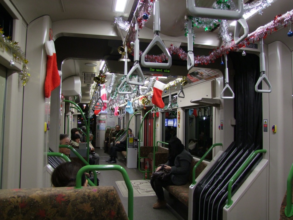 …何だか広島電鉄の車内に、色々と装飾が成されています。そう、この日はクリスマスイブという日でもありました。たまたまですが、この時に寄った広島電鉄横川駅には、イベント列車の到着〔丸本達也、初の広島凱旋ライブ参照〕に鉢合わせする事もあり、束の間のクリスマス気分を体験する事も出来ました。そして江波駅に到着と同時に、広島電鉄の完乗も果たす事になったのでした。お疲れ様でした!