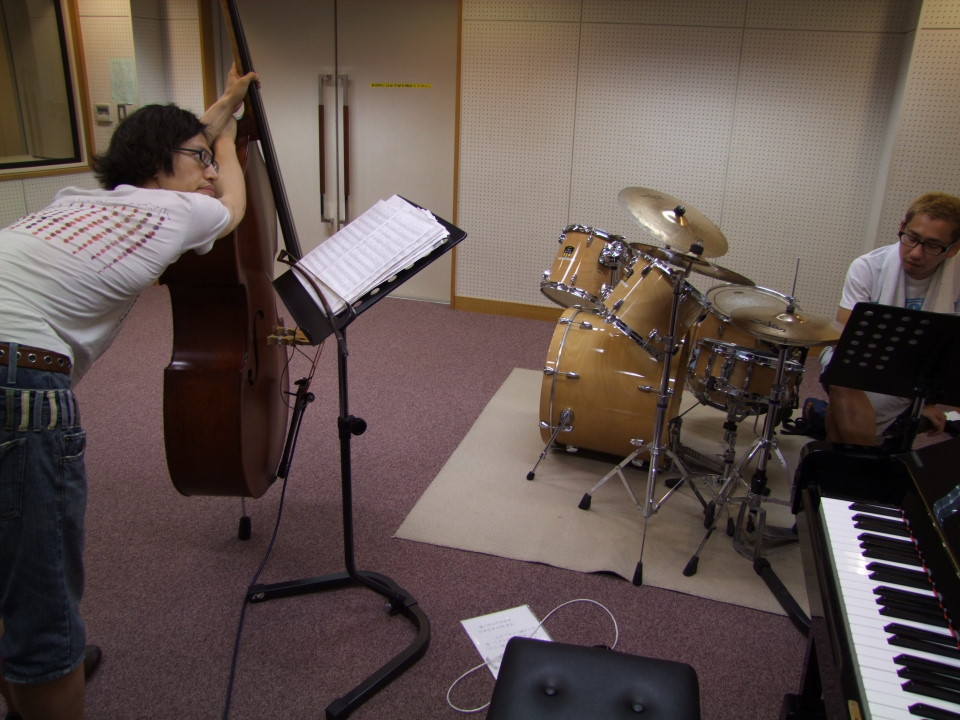 先日、自分のピアノトリオのリハーサルをやってきました。言うまでもなく7月3日(日)に水道橋東京倶楽部で予定されている、新作CDアルバムのレコ発ライブの為で、集中力を持ってガッツリとやってきました!…選曲は勿論、そのCDに入っている曲全てであり、他にカバー曲を少々…という感じです。メンバー3人でちゃんとスタジオに入るのは久し振りでもあるので、変に新鮮な雰囲気を覚えましたが(笑)、このトリオで音を出せる喜びを、改めて感じたものでした。ライブにも、良いコンディションで迎えられそうです。