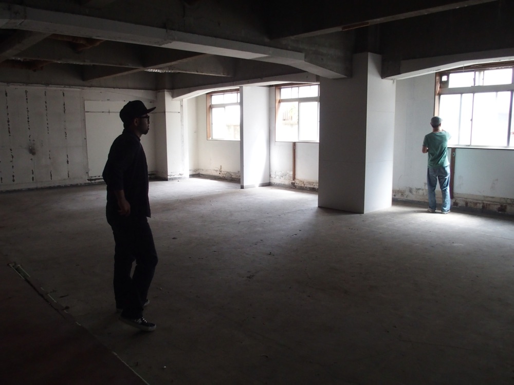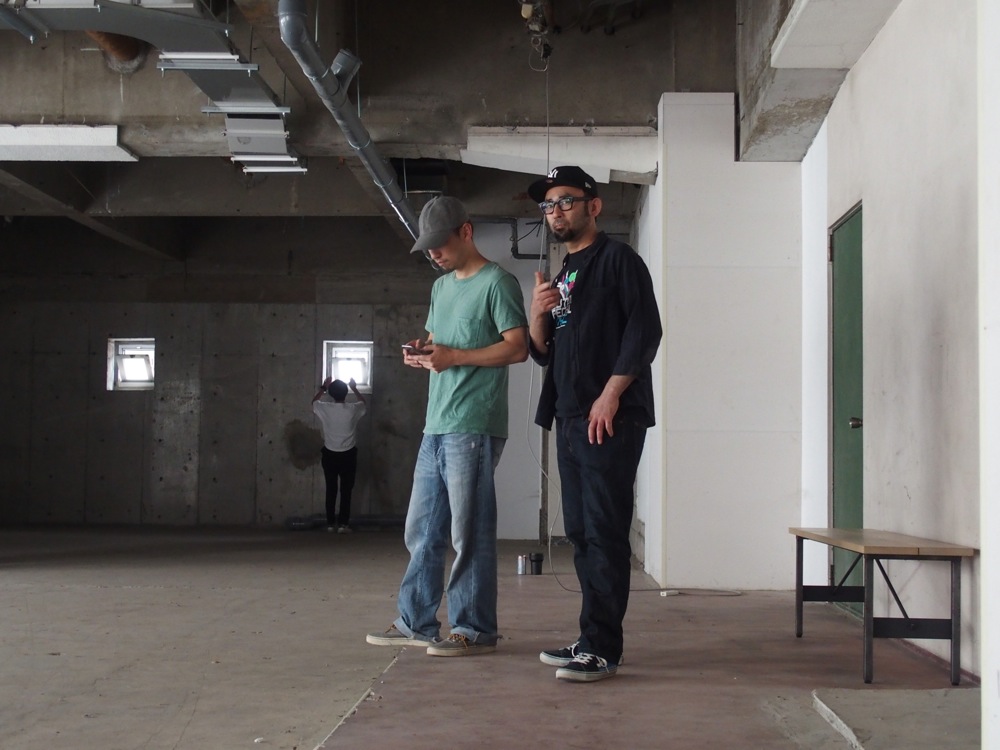 まずは室内撮影。写真の通り、コンクリートの打ちっぱなしの風景がそのまま広がる場所にての撮影で、なるほど、Nautilus の世界観に合っているかもしれません。距離を変えて立ち並んでみたり、ベンチに座ってみたり、壁にもたれ掛かったりと、色々なポジションで撮ってみたりしますが、いずれも順調に事は進み、ここでの撮影は30〜40分程で終了出来ました。このまま移動へと流れます。