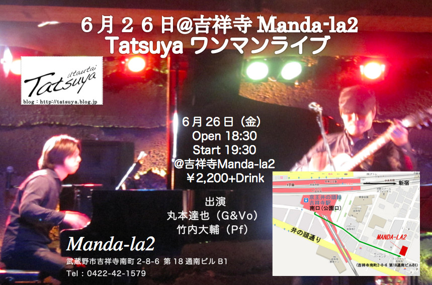 Open…18:00~、Start…19:30〜約2時間(途中、30分の休憩有り)